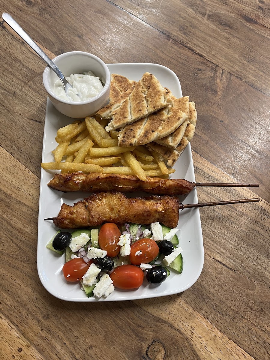 The menu leans into comforting, familiar dishes with a Mediterranean twist—Greek gyros wraps, halloumi skewers, and spiced lamb flatbreads all make appearances alongside classic breakfast offerings like the full English and inventive scrambled eggs with cheese and smoked ham. Portions tend to be generous, making it a solid stop for those who want to fuel up well before exploring the nearby Cotswolds or continuing their journey.